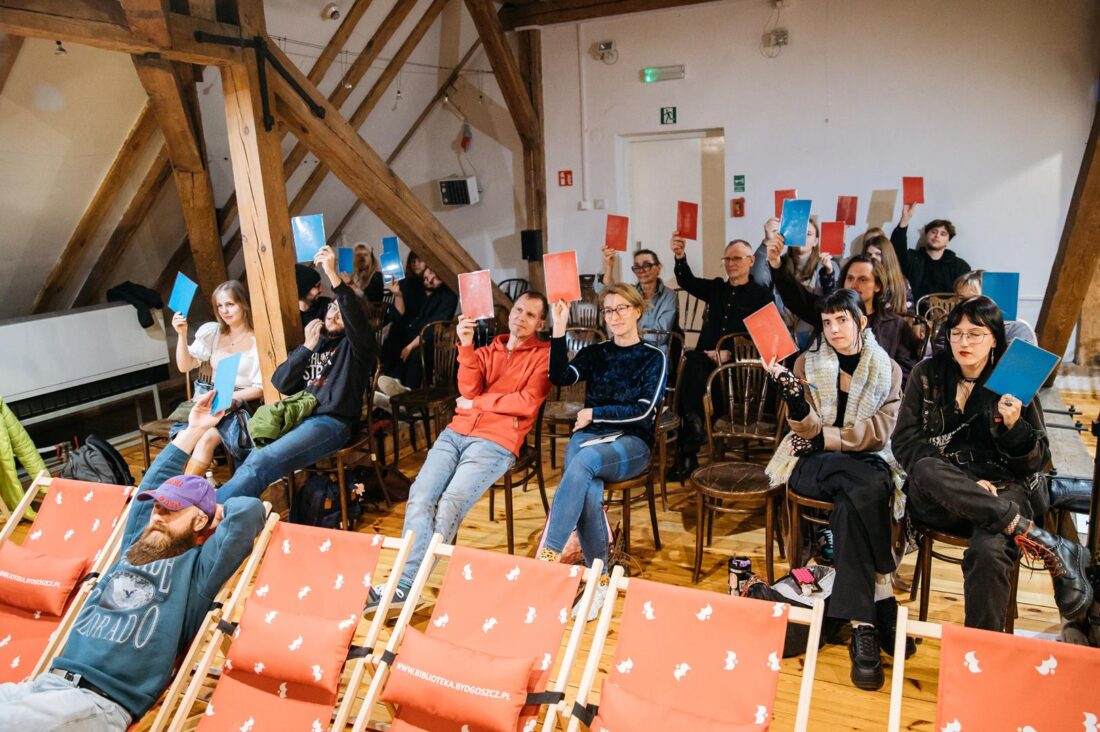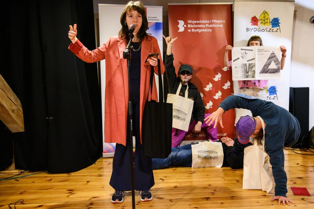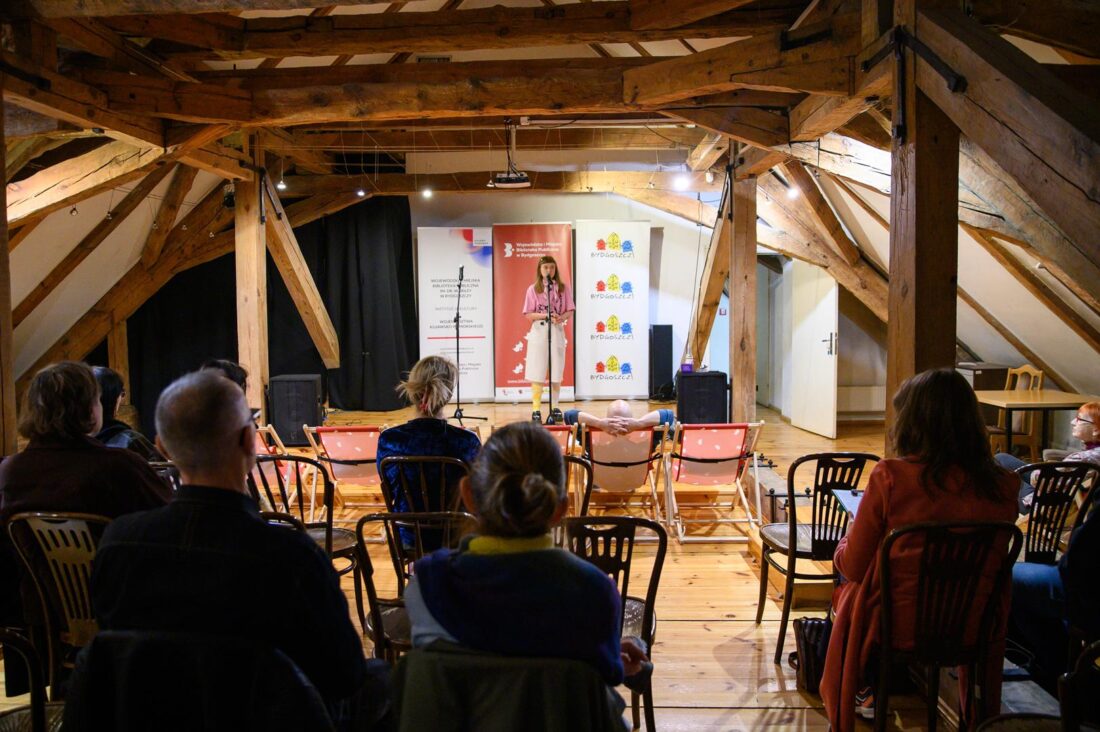 W sobotę, 27 września 2025 r. na strychu WiMBP w Bydgoszczy Zuzanna Szmidt poprowadziła „Slam poetycki”, czyli swojego rodzaju rywalizację poetów-performerów. Formuła slamu narodziła się w latach 80. XX wieku w Chicago, w tej chwili znana jest na całym świecie. W Polsce ma już ponad dwudziestoletnią historię. Wydarzenie w bibliotece cieszyło się dużym zainteresowaniem młodych twórców. Zwieńczeniem Bydgoskiego Trójkąta Literackiego było otwarte spotkanie integracyjne środowiska literackiego w Centrum Artystycznym Eljazz, pn. „Możliwe…”. W luźnej, klubowej atmosferze osoby piszące porozmawiały o literaturze, planach, pomysłach i promocji.